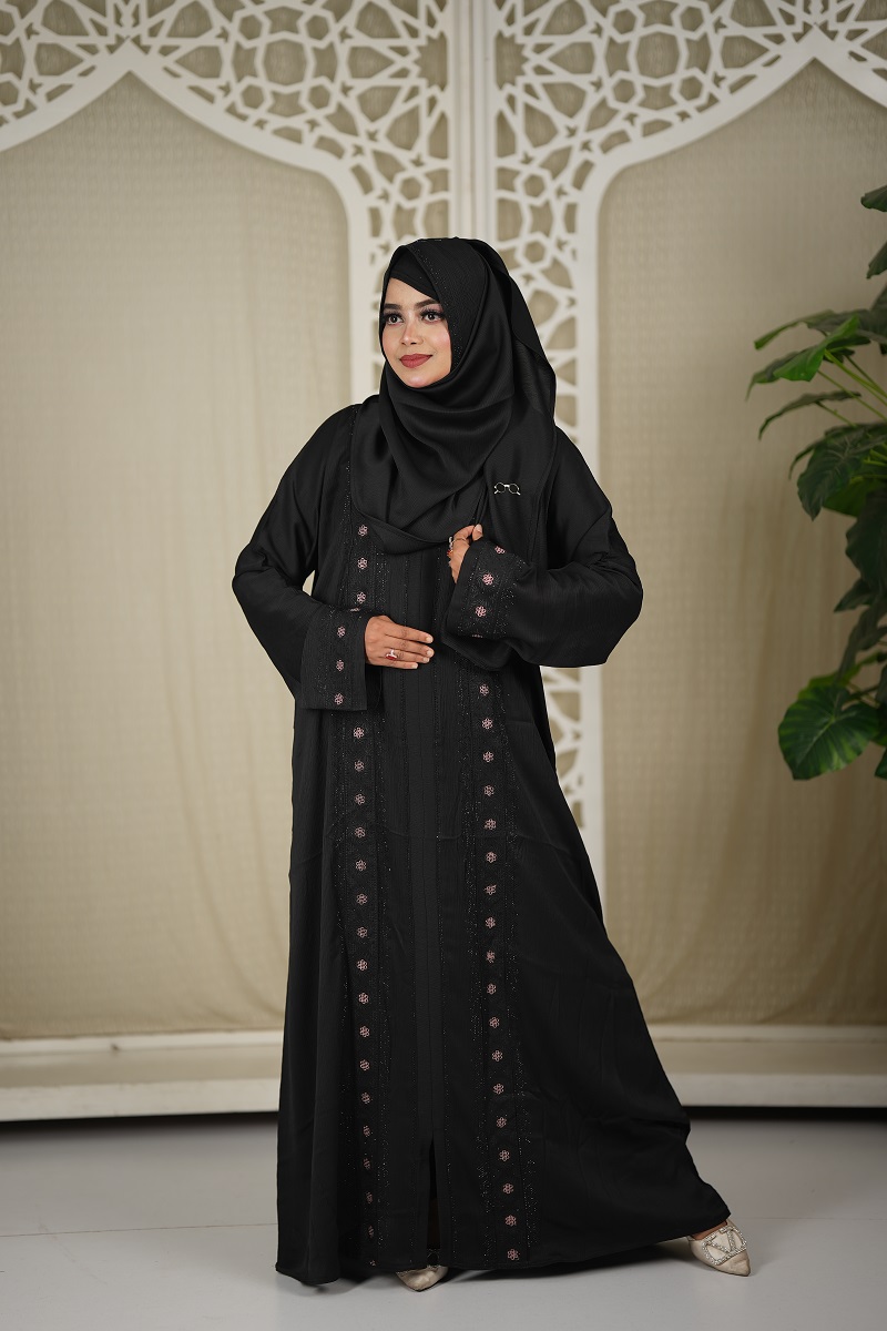জিপার স্টোন দুবাই পাতা বোরকা – কালো