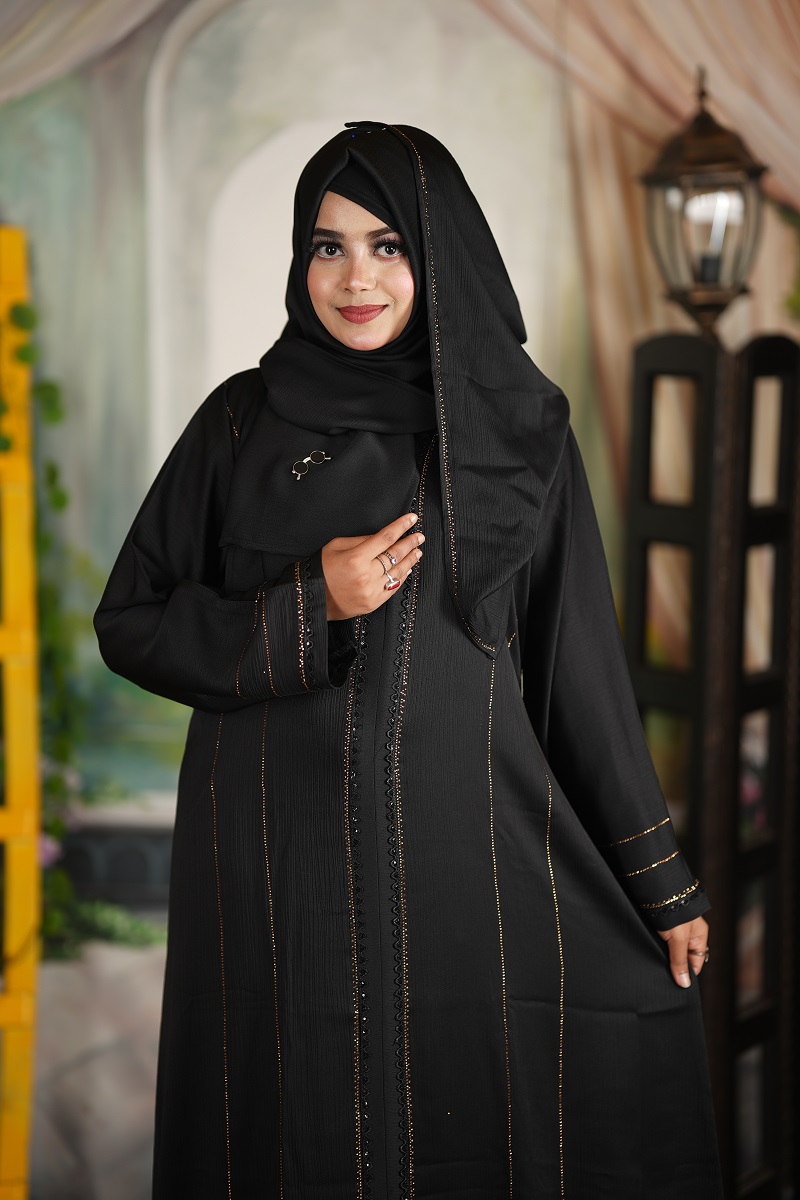 / জিপার স্টোন দুবাই পাতা বোরকা – কালো